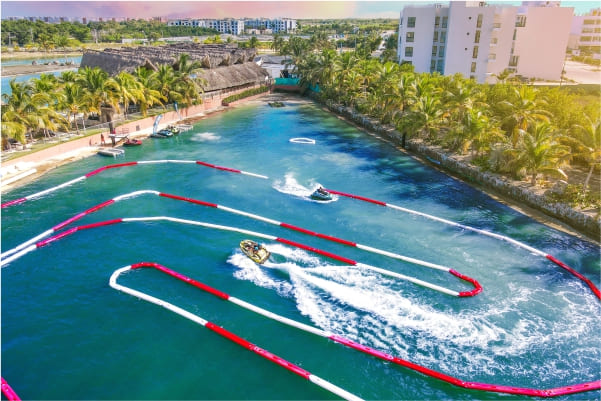 A Aventura Aquática em Punta Cana é um passeio que combina atividades aquáticas cheias de adrenalina, como Jet Ski e Aqua Karts, realizadas em lagos artificiais de água doce, além de atrações extras em um parque estruturado e seguro.