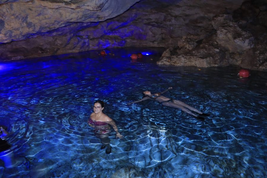 Outro destaque é a Iguabonita Cave, uma caverna milenar com formações rochosas impressionantes e uma iluminação que valoriza ainda mais a beleza natural do local. A visita é feita com guias experientes, que explicam a origem geológica da região e tornam o passeio também uma aula de história natural das Caraíbas.